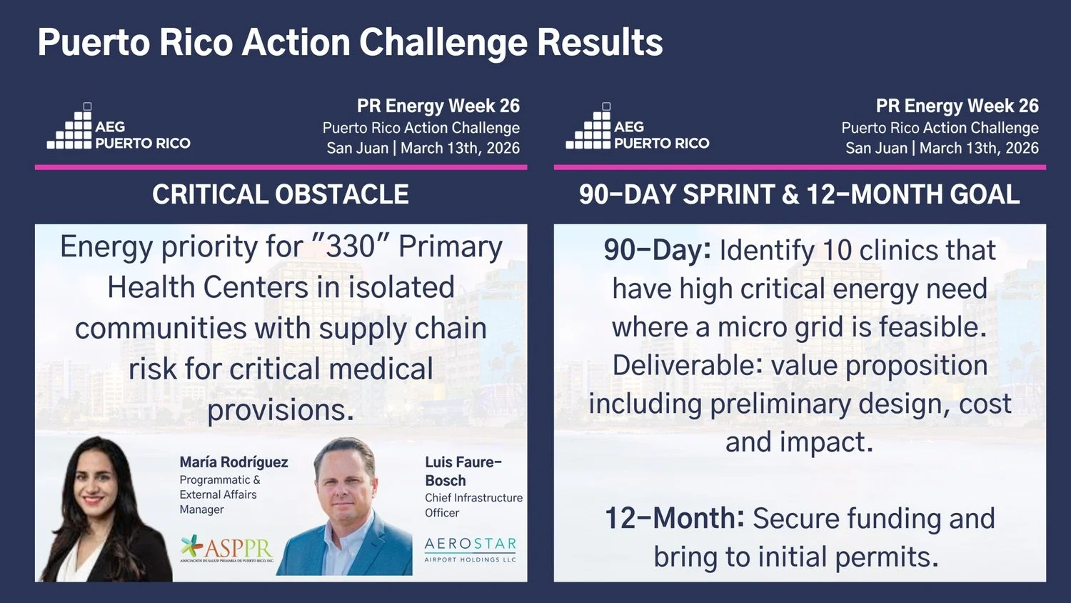 12-month goal: Formed during Puerto Rico Energy Week 2025, the PR Microgrid Development Task Force aligned on the critical obstacle presented by Angel Zayas: Regarding stakeholder collaboration for microgrid development, a critical obstacle to collectively overcome in 12-months to achieve Puerto Rico’s climate, health and energy goals is: lack of an approved Technical Microgrid Regulation.